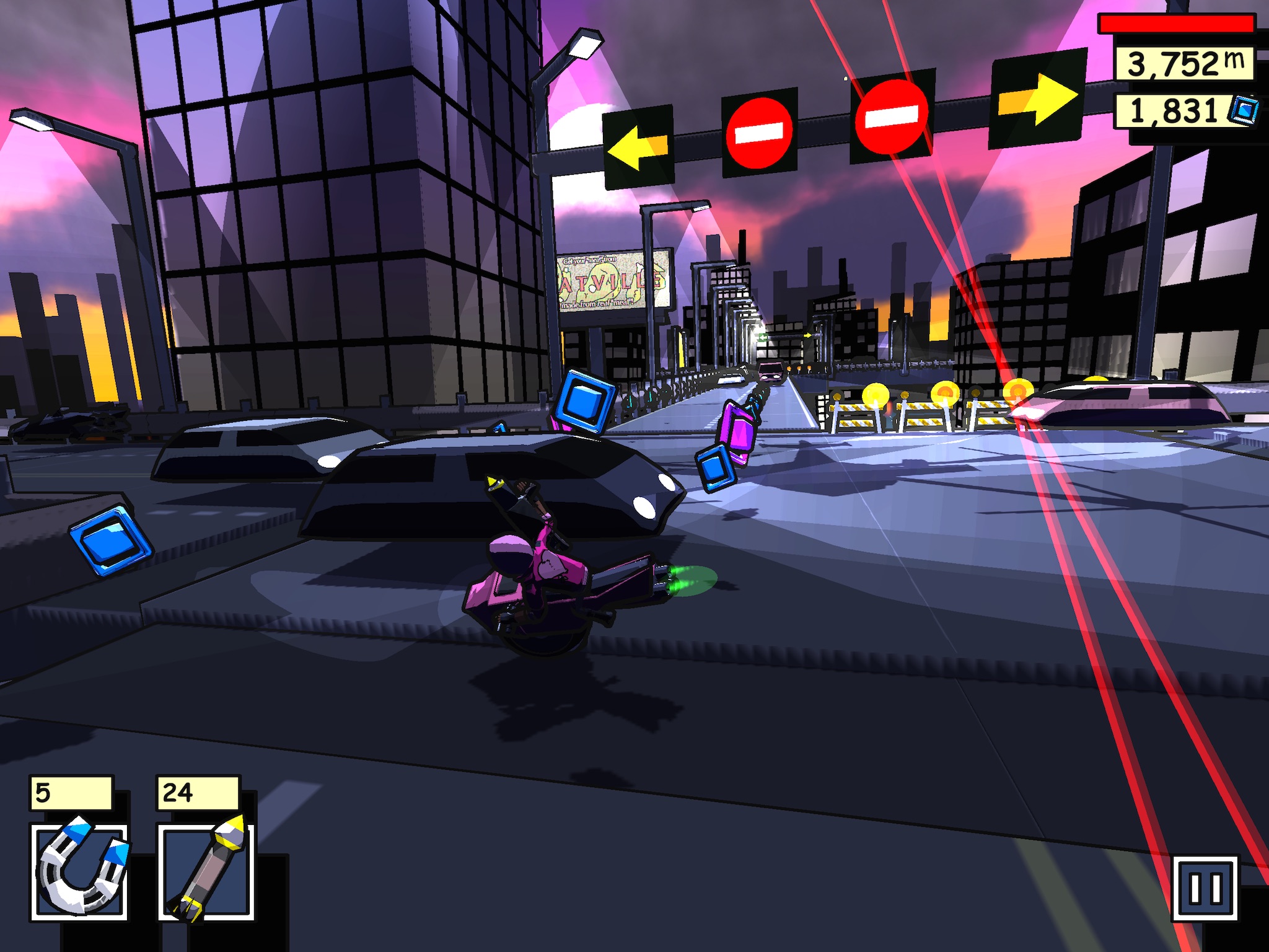 Dodge and his sister Weave have hacked their way into a honeypot of data that threatens to be their last! Only you can save them from gun-toting hover-drones, vicious vehicles, and the surreal streets of Cyber City. Blaze your byte-cycle through a maze of madness, collect your data, and hack your way through this mind-bending adventure!