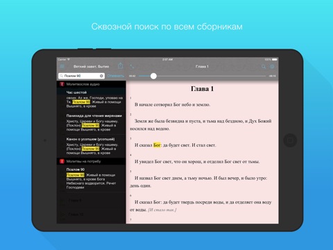 У меня есть все, кроме Евангелия, ну и это со временем загружу. Только мне в этом приложении не нравится, что каждую главу надо заново запускать, автоматом не включается. Вот закончилась глава , а следующую надо включать. Когда есть время, хочется включить и слушать. Продумайте пожалуйста такой момент, чтобы может было по желанию слушать подряд беспрерывно. Чтобы автоматически на другую главу переходило по желанию. Спасибо ;))