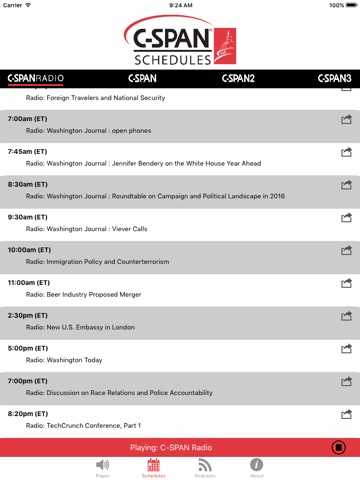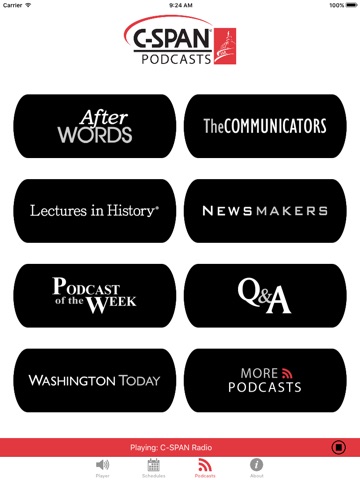 Live commercial-free audio streams of the four C-SPAN networks: C-SPAN Radio, C-SPAN, C-SPAN2 and C-SPAN3.