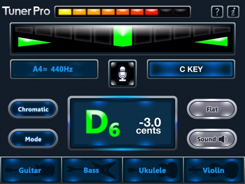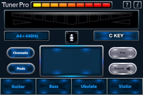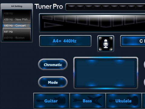 C Tuner can tune acoustic or electric guitar, bass, bowed strings, woodwinds, brass, piano, tympani, tablas and any other instrument.tuner star pro is not only a tuner with chromatic, It have four instrument mode: guitar tuning / ukulele tuning / violin tuning / ukulele tuning, each instrument with several tuning modes, It help you easier to tuning.