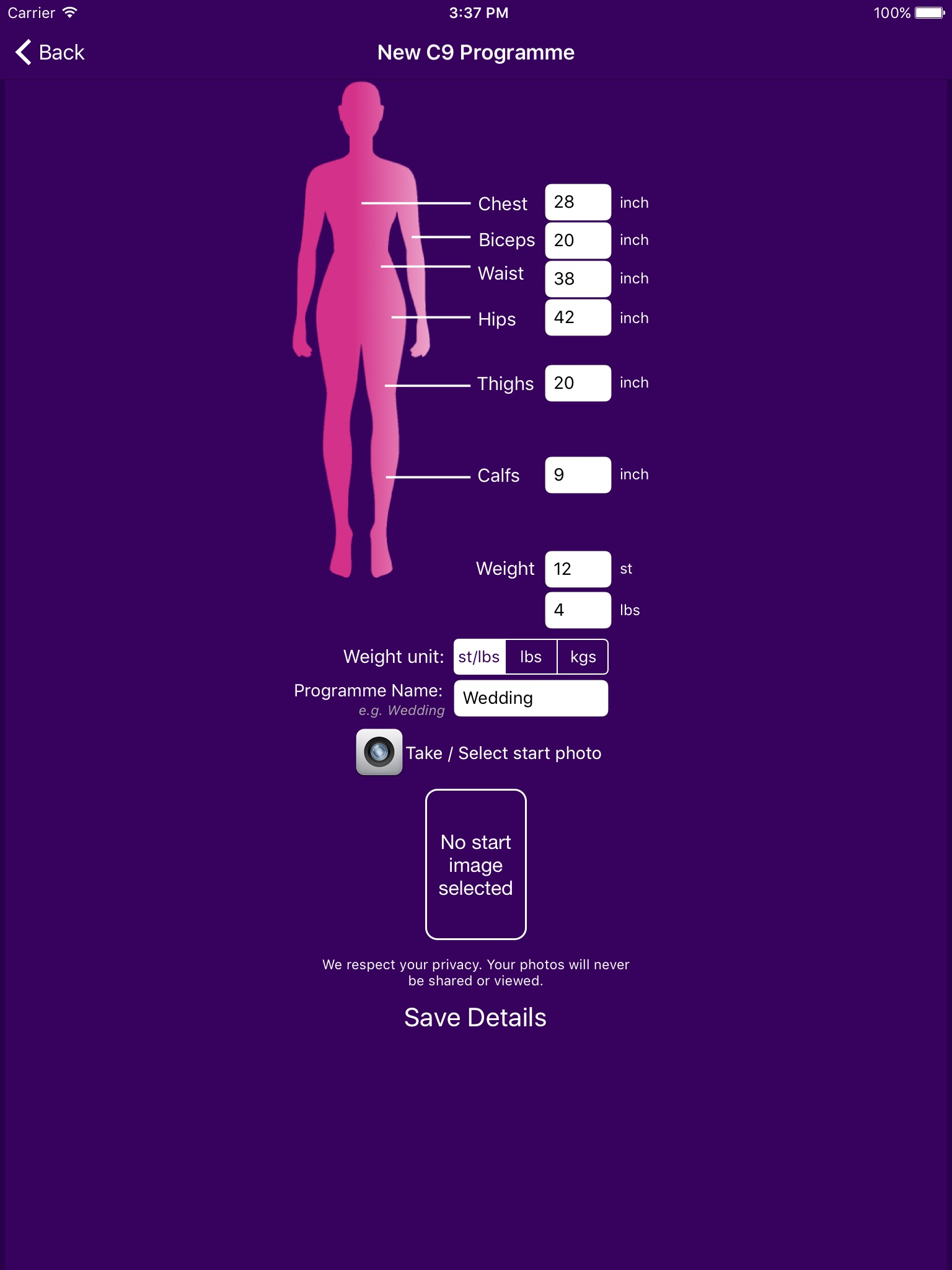 You can even store previous programmes you have completed, store/compare before and after photos as well as share your results on Twitter and Facebook.