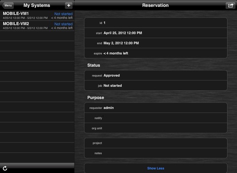 CA Mobile Reservation Manager allows users to manage basic reservation tasks in CA Server Automation Reservation Manager using an Apple® iPhone® or iPad®. The Mobile Reservation Manager is a companion product to traditional CA Server Automation Reservation Manager product, optimized for the virtualization environment on the go. With this client you can create and manage your reservations.