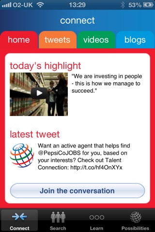 At your fingertips you’ll find the latest video releases from PepsiCo, updates from the PepsiCo employee blog and have the chance to read and respond to the latest tweets from the recruiting team behind @PepsiCoJOBS