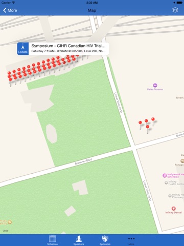 - Find event locations using the event map, with navigational directions from your location