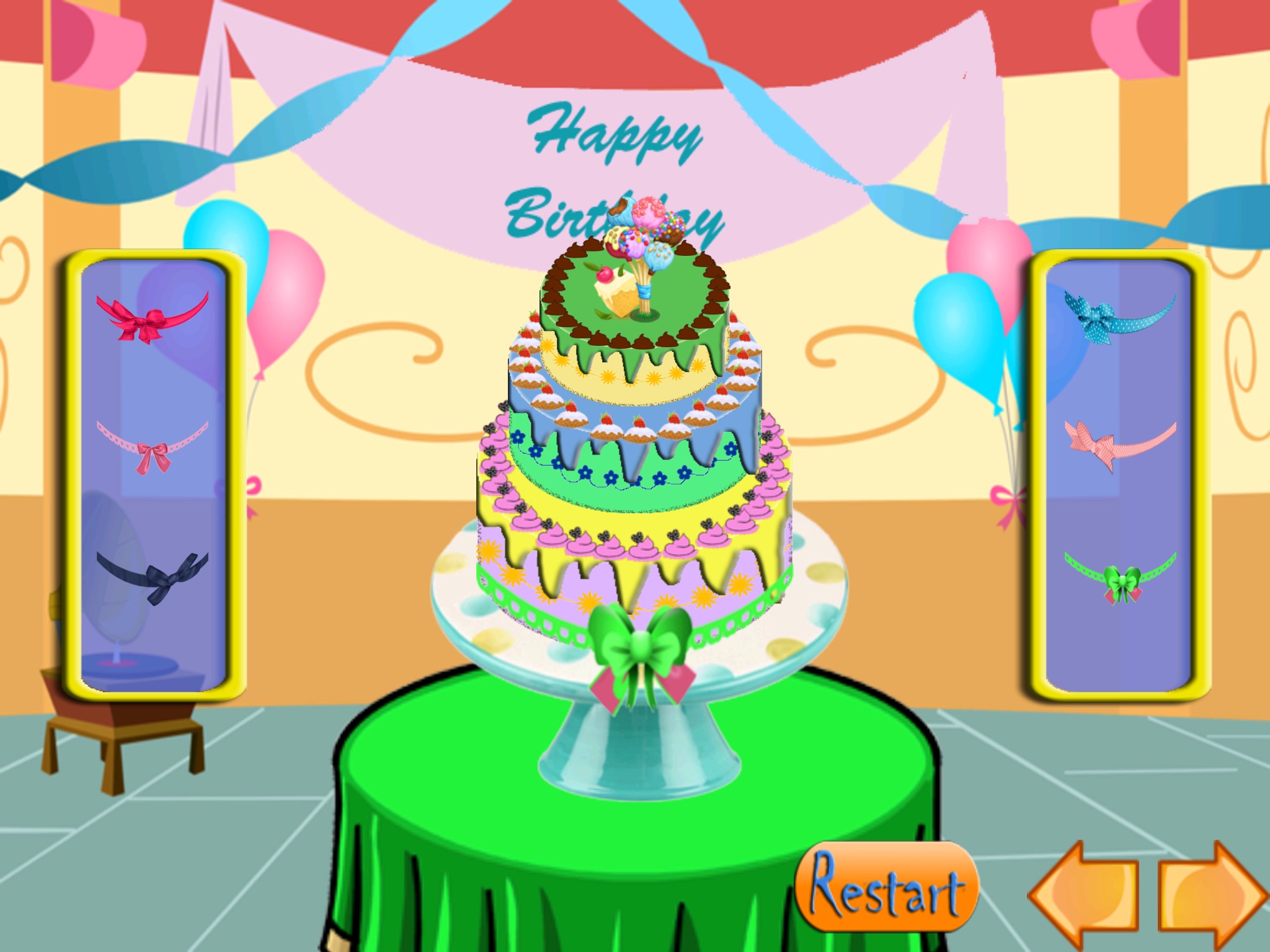 With this bakery game you will lear how to decorate cakes with all kind of decorations.