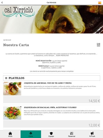 Descárgate la App del Restaurante Cal Xirricló de Balaguer y descubre toda su gastronomía y su bodega.