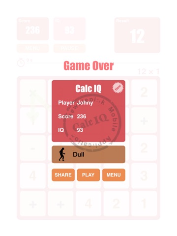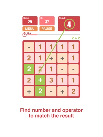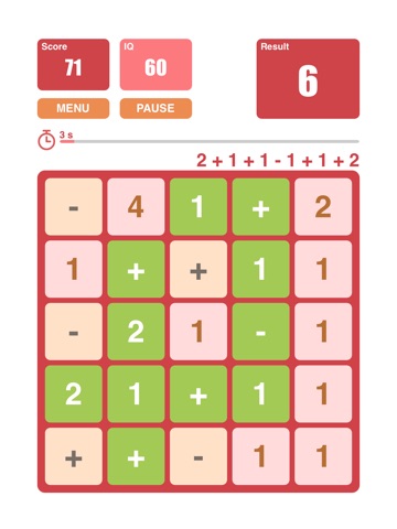 Calc IQ is fun game to exercise your mind, you must find the number and operator to match the result. After end game you will get the approximate IQ.