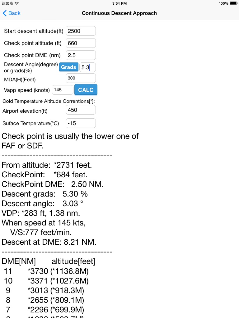 The calculation of time, as well as commonly used in the calculation of the flight.In particular non-precision approach (VOR/DME, NDB/DME, LOC) for the descent profile calculation, making a more accurate non-precision approaches.