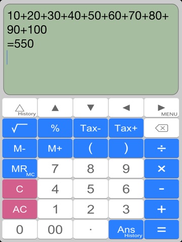 - Four arithmetic operations, root, percentages, time, tax and parentheses calculations