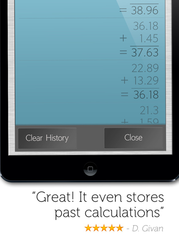 Calculator Plus is a simple and easy-to-use calculator. It remembers everything you calculate, and lets you review your history and past calculations anytime.