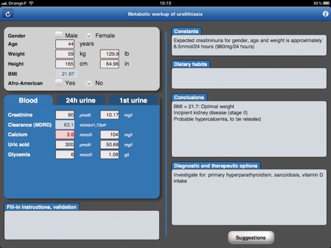 A metabolic workup established by the Urolithiasis Committee of the French Urologist’s Association is recommended in renal stone disease patients in order to investigate both the etiology and the risk factors. This program is designed for urologists, nephrologists, dieteticians and biologists in order to provide a useful tool for first screening laboratory tests read out.