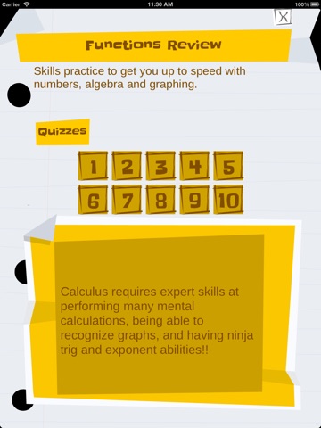 This app is PERFECT for the beginner calculus high school, college, or university math student. FUN games move you from easy math concepts to algebra and tougher introductory calculus concepts. Practice your math, algebra and calculus skills while enjoying humour, graphics and an easy GAME!