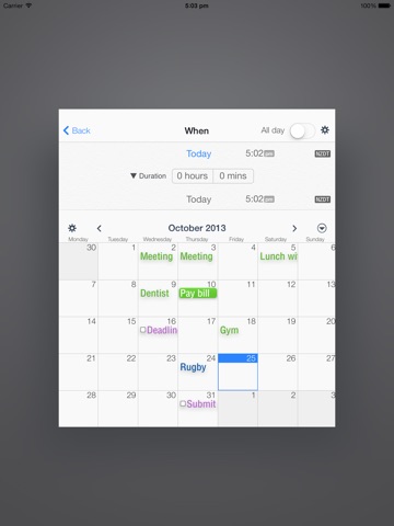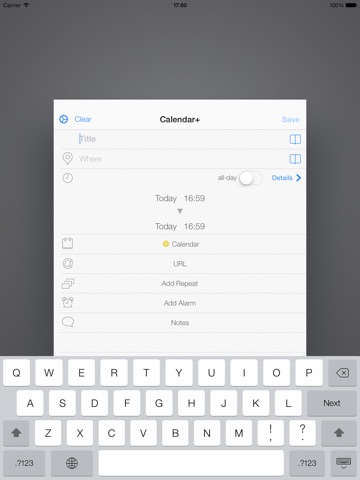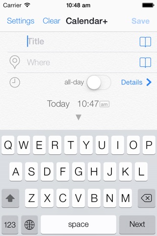 Easy, fast, data entering to Calendar app.