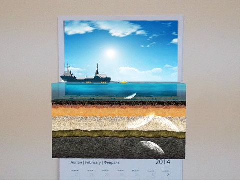 Look through the pages of the calendar and you will see visuals, that although rather abstract they represent the Kashagan development stages. At the same time these are also markers, which are readable by the application installed on your mobile device.