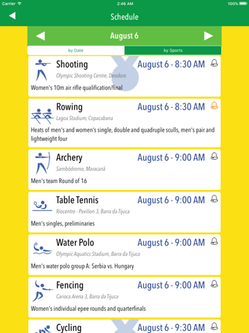 The complete schedule for Rio in your hands, add the events to your calendar with one tap and dont miss the events.