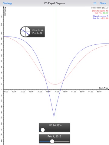 Creating, reviewing, and sharing your options strategies are so easy! Just follow our clear on-screen guidance. You can conveniently modify the strategy according to your own needs, like edit the strike price, change the contract number, etc. With a few clicks and you are all set! Your strategies are automatically saved for further review / research. You can then study the strategy payoff diagram and observe the time decay impact through multi-touch features like pinch-to-zoom, double-touch-reset, two-finger-move, etc. Pressing one finger on the chart for a short moment, you can also bring out a magnifier for precise chart reading. Share the strategies easily by email with just one simple tap!