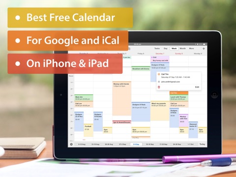 Je cherchais un calendrier qui se synchronise sur celui du tel et non de google et me voilà fan de cette appli ! Design simple mais coloré (ou non, au choix), clair (vue par jour, semaine, mois ou autres). Vraiment tip top, rien à redire !!