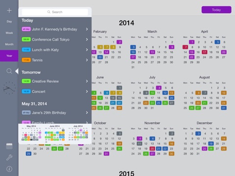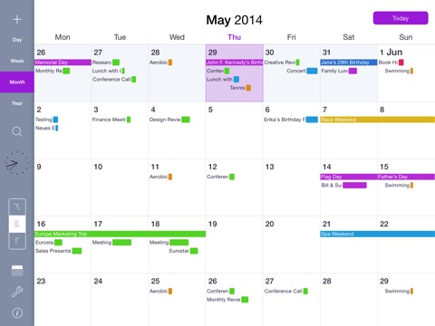 • On the iPad, the date inspector allows you to easily add, edit and delete events from the month view.