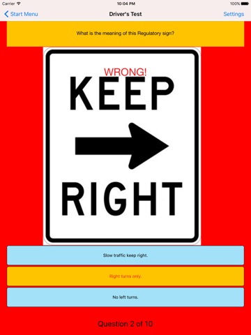 - the ability to focus the test on any chapter from the DMV handbook. If you want to test yourself on just signs, then select "Signs". If you want to just test yourself on the Rules of the Road, then simply select that chapter alone.