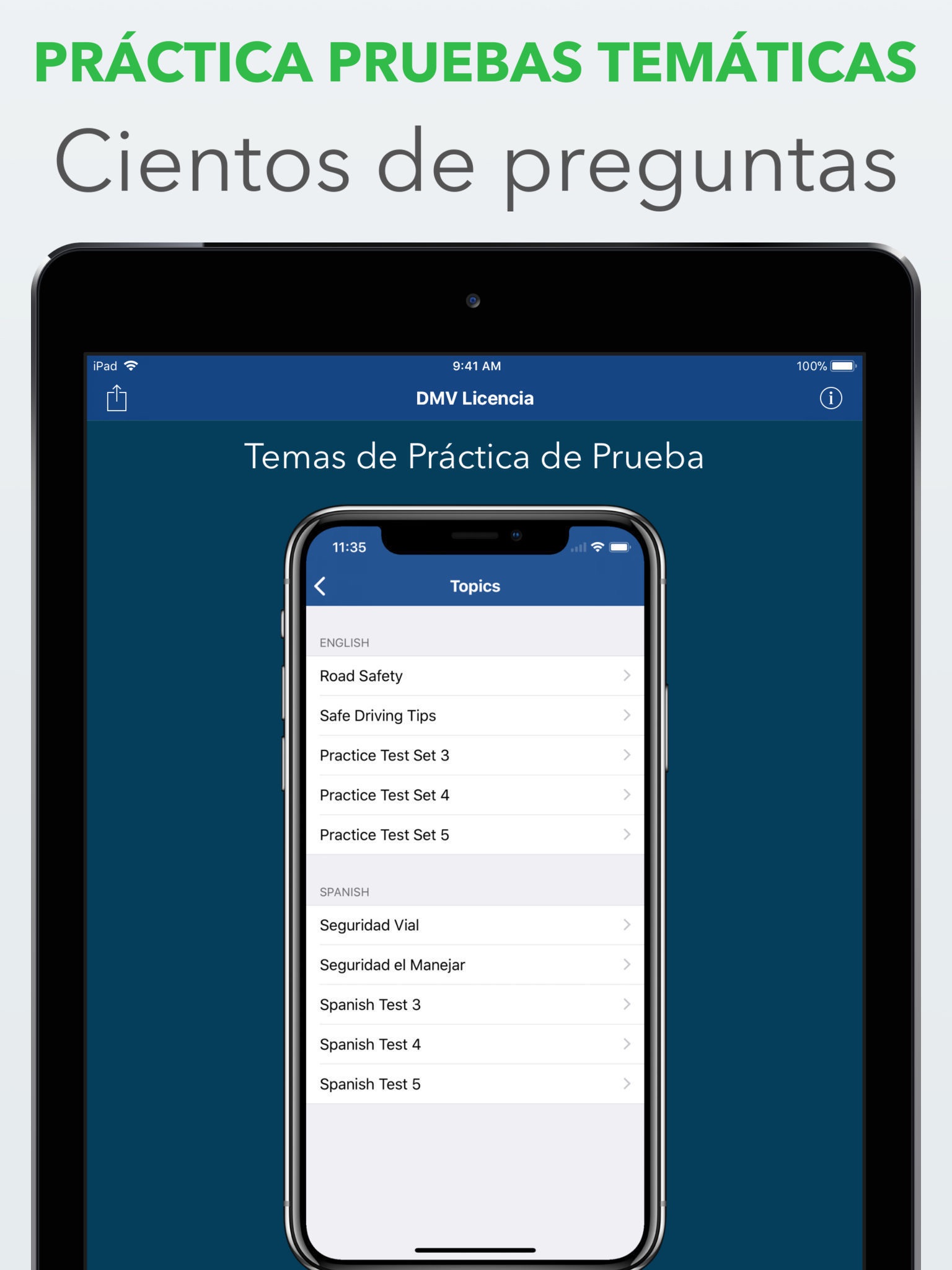 Want to experience the real driver license knowledge test? You absolutely can, by trying out the included practice test with hundreds questions and real correct answers in English and Spanish combined.