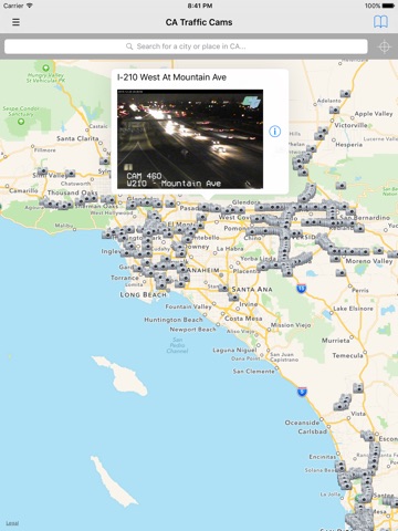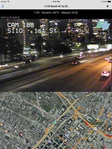 All road info and Caltrans traffic cameras are on a Google Map with the current traffic layer. Choose from Regular, Satellite, Hybrid, or Terrain maps.