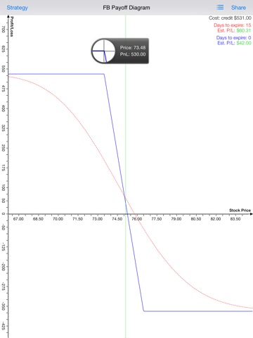 Creating, reviewing, and sharing your options strategies are so easy! Just follow our clear on-screen guidance. You can conveniently modify the strategy according to your own needs, like edit the strike price, change the contract number, etc. With a few clicks and you are all set! Your strategies are automatically saved for further review / research. You can then study the strategy payoff diagram and observe the time decay impact through multi-touch features like pinch-to-zoom, double-touch-reset, two-finger-move, etc. Pressing one finger on the chart for a short moment, you can also bring out a magnifier for precise chart reading. Share the strategies easily by email with just one simple tap!