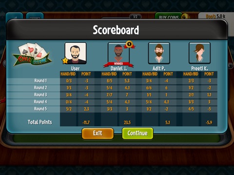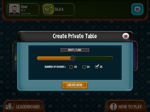 -Instead of playing Five Rounds you can select Number of Rounds(ex. 3 Rounds, 4 Rounds, 5 Rounds) and Boot value For Higher Tables.