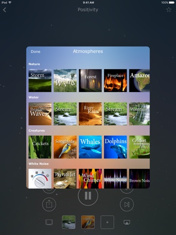 • A soundscape mixer that allows you to blend soothing nature sounds with your favorite music.