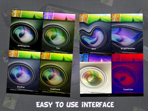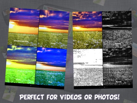 With this application you can take videos and photos using the following effects:
