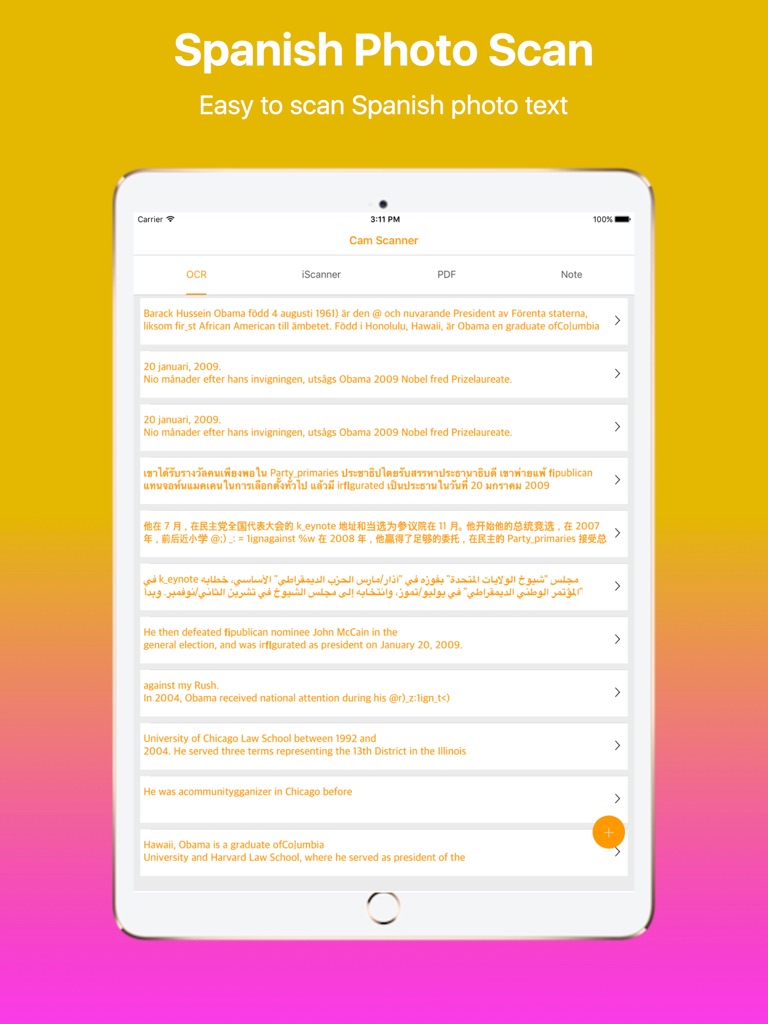 OCR (optical character recognition) feature recognizes texts in document images and extract them from images for later searching, editing or sharing.