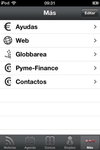 * Notificaciones. Selecciona los cursos, ofertas de empleo, eventos o noticias de los que quieres recibir alerta en el móvil.