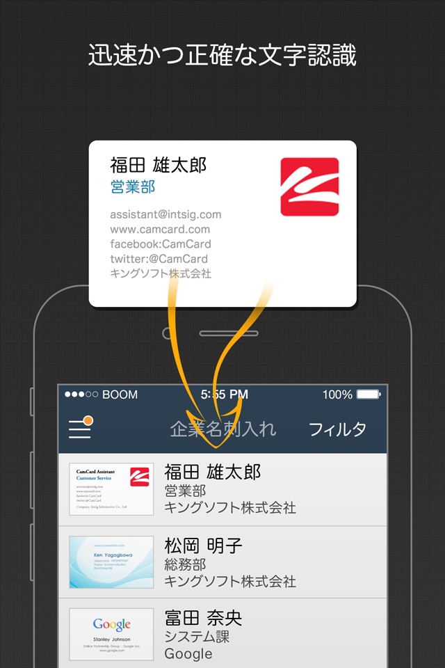Quickly and accurately read business cards in 16 languages and auto enter contact info with smartphones