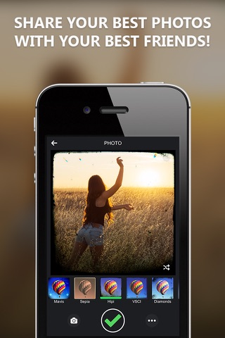 You will use your selfie camera more than ever! The magic of Camera and Photo Filters for Instagram lies in cool photo effects and carefully chosen camera filters. Just imagine how cool your selfie or a photo with friends could be if you use photo effects from Camera and Photo Filters for Instagram. You will never have to worry about how you look on Facebook or Instagram, because with this photo editor app and its cool photo effects and best photo filters, you can do no wrong!