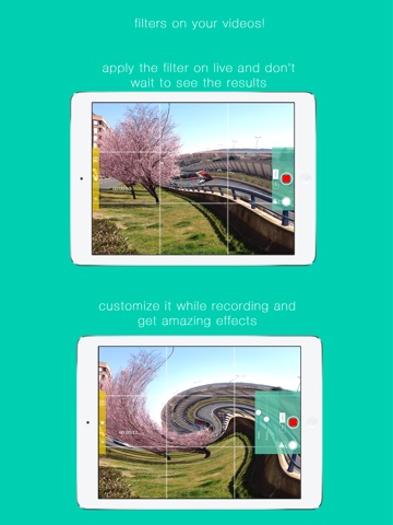 - Use more than forty live filters (divided in color, artistic and distortion filters) to record videos or take photos. You know how it will look before you shoot!