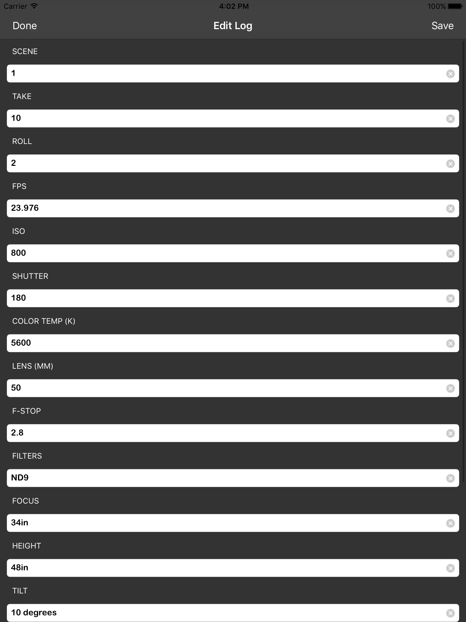 The app also allows you to hide fields you dont want to see. So its very flexible for every filmmaker.
