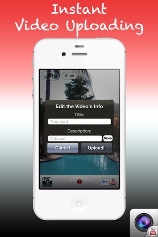 Camera for YouTube will automatically upload everything you record with your camera to YouTube; all you have to do is give the video a title, and it will upload AUTOMATICALLY! Using the *EXCLUSIVE AUTO-UPLOADING ENGINE*!