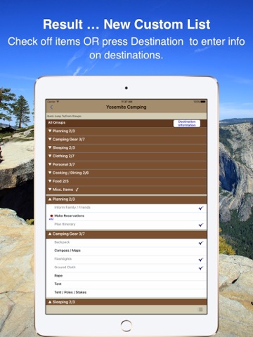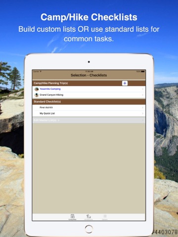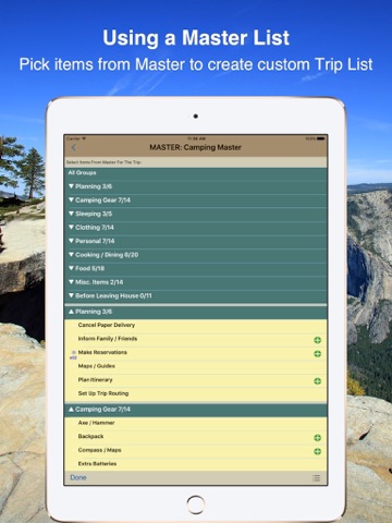 Very nice App, I love the master list concept where I can but all my camping gear and chose to create a list from that master depending on the type of camping Im doing. As a wish list, it whit be great to have a option to transfer a list from the iPad application to my iPhone application.