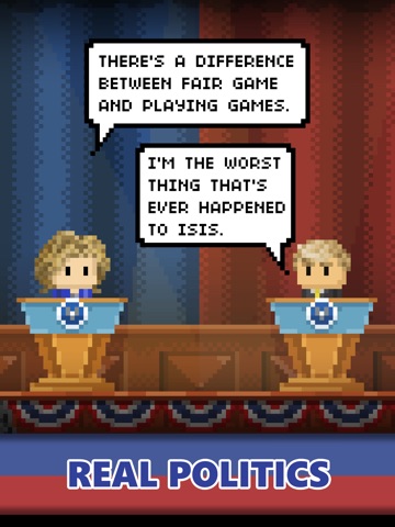 • Stay up to date with the real life action, as the candidates use real quotes pulled live from their twitter feeds.