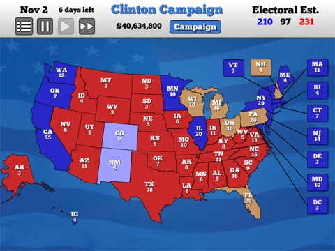 Great game. Just needs more historical sim and running mates and candidates home states being weighed in as well