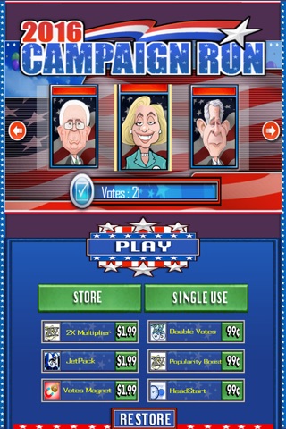 Campaign Run 2016 is the super fun and hilarious endless runner that gives you full control over who gets the most votes! Pick any of the candidates, and let your body be your ballet!