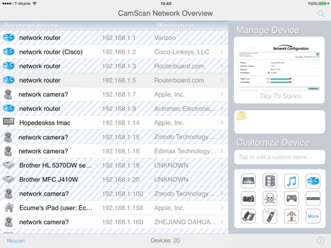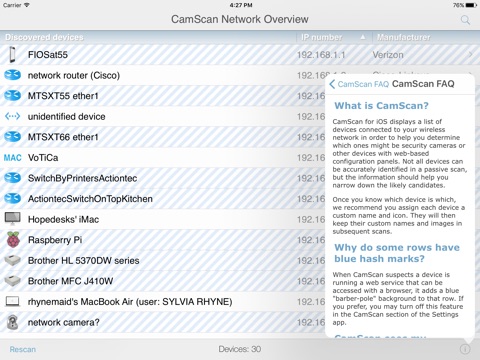 Finally, we get the update for Camscan! :-) Review: Camscan is a useful, not to mention clever, program. It scans networks for anything with an Internet facing log in (in other words: a webcam, router, or other device that has a self generated web page for remote control). As a computer professional, I use Camscam to make sure the above mentioned devices are secured properly. Its a real time saver, and handy to boot.