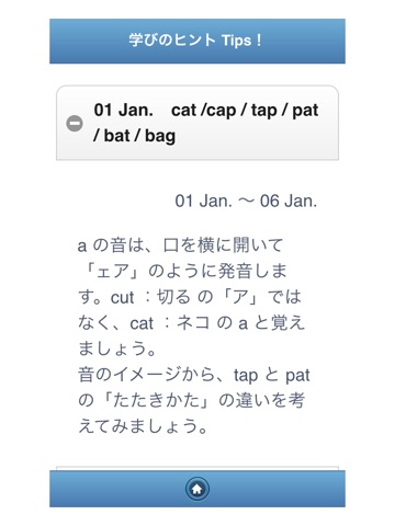 pan:平なべ - plan:計画 - plant:植物 - planet:惑星 など独自の工夫によって配列された英単語を練習しながら、いつの間にかに「英単語の覚え方(コツ)」を身につけられるよう工夫をした英単語学習アプリです。