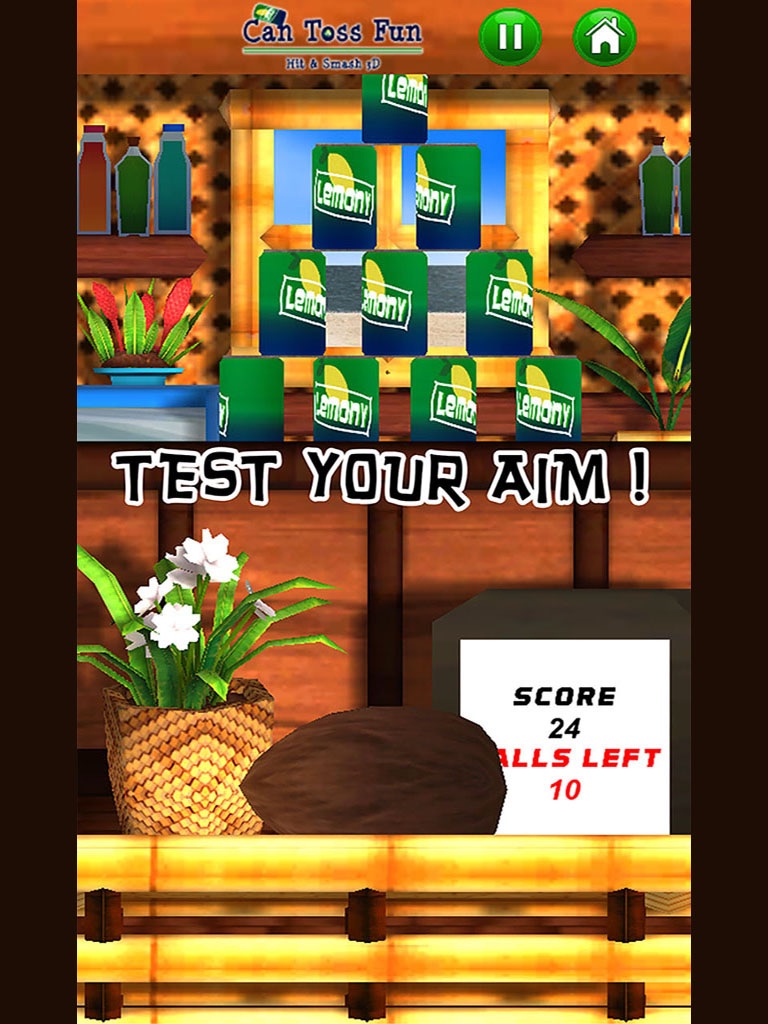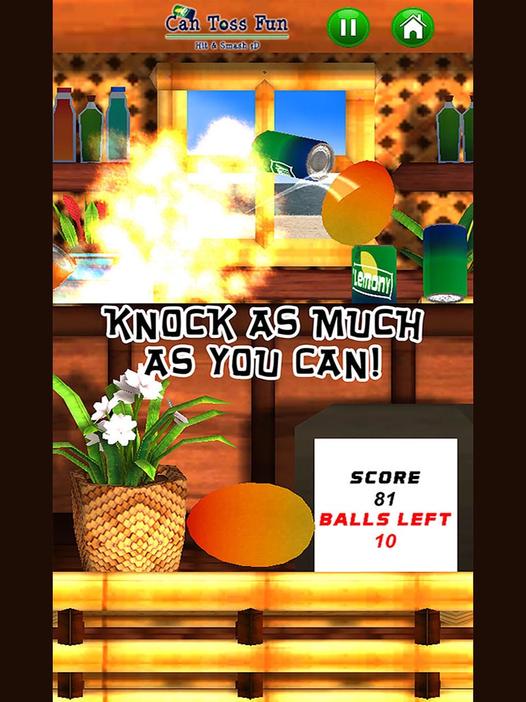 The target of the game consists in knocking down the cans with as less throws as possible. Simply aim at the pile of cans and throw them down with the provided fruit. Strike down the exploding cans to destroy the entire pile with one hit.