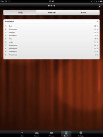 -See the top 10 nation wide at each difficulty level