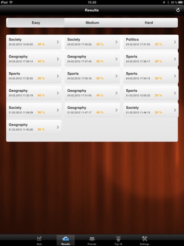 -See your results in each category and at each difficulty level