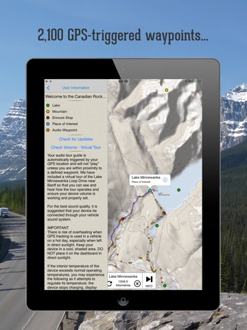 "This is the first review I have ever written, but after traveling throughout Banff, Jasper, Yoho, and Kootenay, and using this audioguide every day for 10 days, this is far and away one of the best apps I have purchased. ...The app worked seamlessly on my IPAD, the stories and information triggered by the GPS. I could not recommend this app more." – uclakurt (USA)