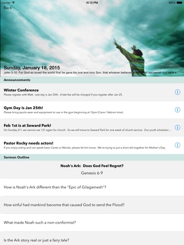 This application has many features to facilitate worship and prayer, including bulletins, sermons, note taking, prayer requests, and the latest news.
