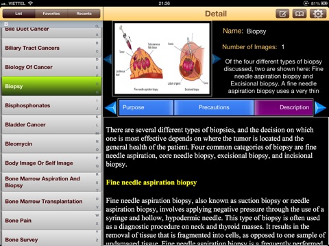 This app is a unique and invaluable source of information for anyone touched by cancer. This collection of over 450 entries provides in-depth coverage of specific cancer types, diagnostic procedures, treatments, cancer side effects, and cancer drugs. In addition, entries have been included to facilitate understanding of common cancer-related concepts, such as cancer biology, carcinogenesis, and cancer genetics, as well as cancer issues such as clinical trials, home health care, fertility issues, and cancer prevention.