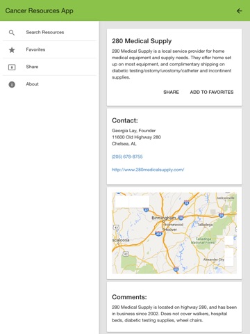 The "Cancer Resource APP" offers comprehensive information for community cancer resources located in Alabama.