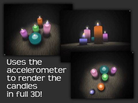 The ONLY candle App that uses the accelerometer to render candles in full 3D! See the user reviews: "An awesome app"--"Uses the iPhone technologies at their best"--"So relaxing"